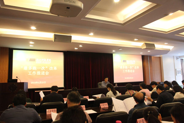 4月23日,学校召开“最多跑一次”改革工作推进会,校党委副书记符宁平主持会议。机关各部门、直属单位、二级学院(部、中心)负责人、改革工作联络员、师生代表参加会议。