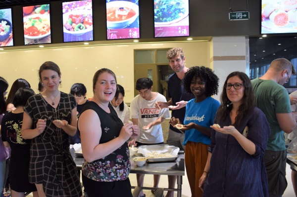 夏令营活动中,德国教授为中德两国学生讲授专业课程,指导“2+3”项目学生与德国学生一起完成课程项目。外国语学院/中德学院为德国学生开设了中文日常会话交流和中国文化介绍为主在中国文化课。此外,学院还组织参观茶叶博物馆、学习太极拳以及茶馆体验等文化体验活动。在夏令营活动结束前,两国学生参加了以饮食文化交流为主题的包饺子活动。在闭幕式上两国学生共同展示了为期两周的课堂学习成果。为期两周的活动,“2+3”项目学生不仅学习了专业知识,也提前了解和体验德国的课程学习方式,为即将开始在德国学习生活打下基础。德国师生体验中国传统文化,亲身了解中国文化的博大精深。 (外国语学院/中德学院 路璐/文 学生 钟芳怡/摄)
