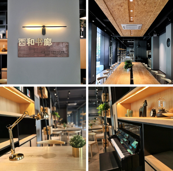 大学生社区学院“西和书廊”选址在小和山校区西和公寓4幢,采用校企共建的形式,内设移动师生服务角,融三自教育、党建活动、心理辅导、学术交流、文化休闲、学业指导、便民设施等功能为一体。大学生社区学院是继书院制改革后,我校三全育人体系建设及思政工作向公寓拓展的重要平台,是落实我校第四次党代会有关精神的重要举措。