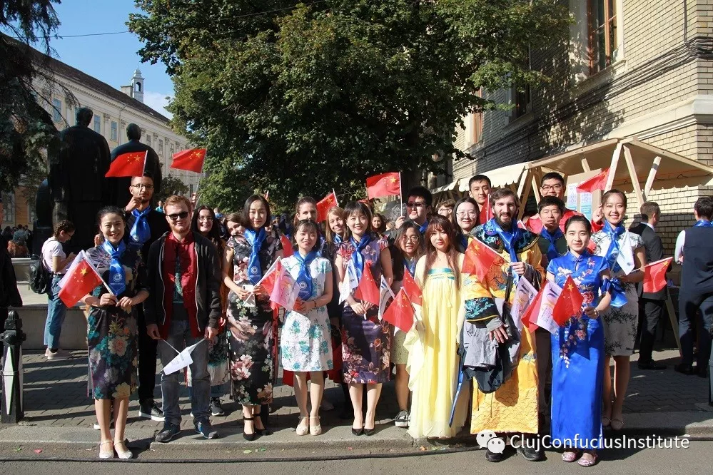 国庆前,罗马尼亚克鲁日孔子学院组织了一系列以庆祝中华人民共和国成立70周年为主题的文化活动,为祖国庆生。孔子学院教学点的老师们组织中罗师生共同书写的汉字“祝福中国”、中罗传统服饰秀等活动,为新中国成立70周年送上的一份真诚祝福。克鲁日孔院师生手持国旗,身穿传统服饰,参加罗马尼亚巴比什-波雅依大学百年校庆大游行。(克鲁日孔子学院 刘雪纯/文 刘九伶/摄)