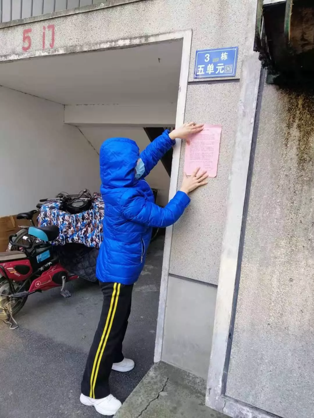 (宋眉在小区张贴宣传单)