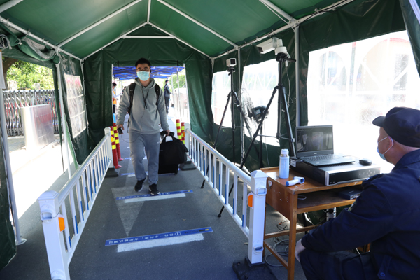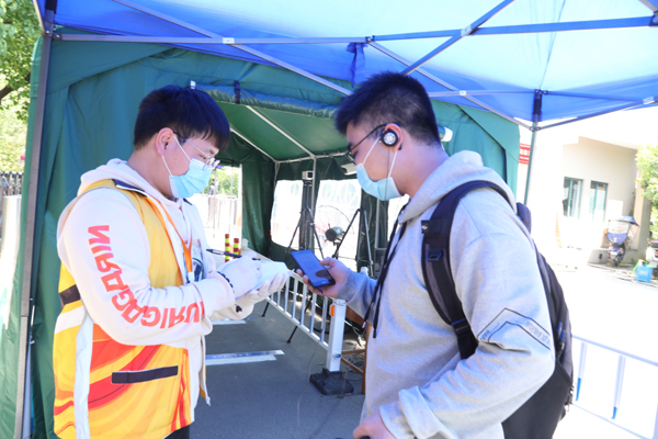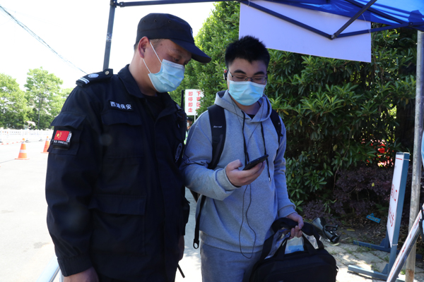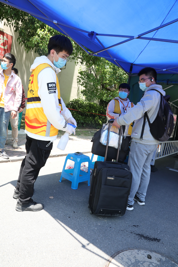 按照“分批错峰”的原则,首批返校学生以全日制本硕毕业班学生为主,他们也成为第一批“返校复学”志愿者。学校实行人流错时错峰抵校和校门口交通协调,自驾车辆即停即行,学生下车后立即进入专有通道。经过身份核实、体温检测、“返校码”核验、行李消毒等程序,学生方能入校,进入宿舍前,还需进行“寝室复检”。