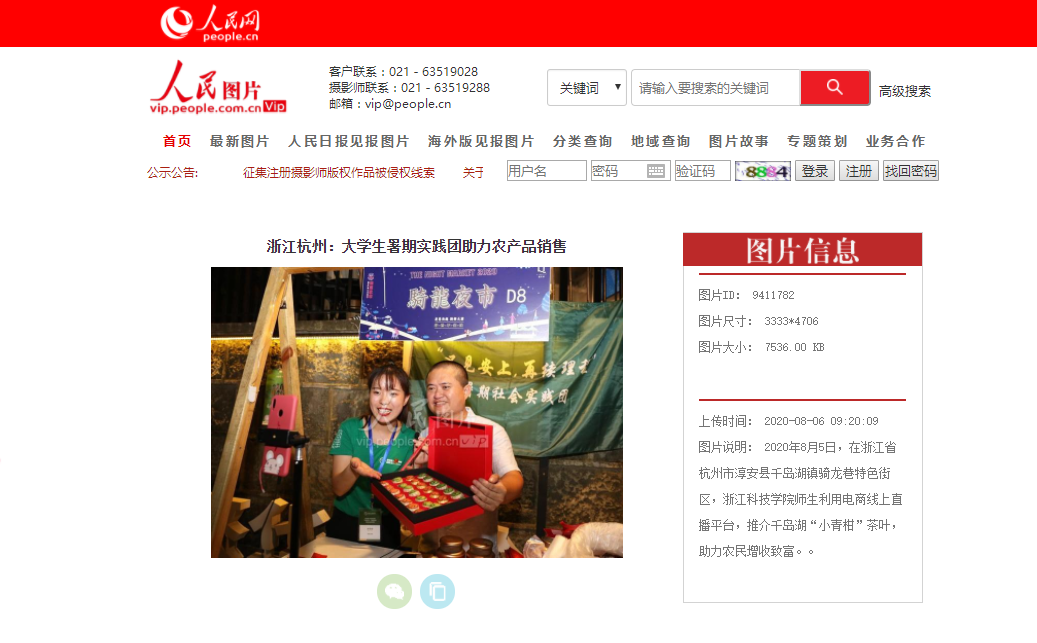 理学院/大数据学院“又见安上 再续理程”暑期社会实践团队再次走入浙江省杭州市淳安县金峰乡安上村,围绕主题“打赢脱贫攻坚,青春建功有我”开展暑期社会实践活动。队员们走村入户,了解当地特色农产品的种植、管培、销售等情况,创新农产品包装设计,利用电商线上直播平台、入驻特色街区等形式“推介”千岛湖有机茶、番薯干、山核桃等优质农产品,助力农民增收致富。8月5日晚,暑期社会实践团队电商小分队在千岛湖骑龙巷采用当下较火的“线下摆摊+线上直播”的新模式推广由安上村高山野茶而制的小青柑系列茶品。团队成员们分工合作,一部分负责地摊的经营,一部分负责直播。“带上你的小心肝,尝尝我们的小青柑”,负责地摊经营的团队成员卖力地吆喝着,引起众多路人围观。直播间的主播们也丝毫不甘示弱,“相信我没错,买它买它买它!”团队成员不仅直观地展示了小青柑的泡茶工艺,积极与直播间观众互动,还将镜头转向试喝的路人进行实时采访。经过两小时的“线下地摊+线上直播”,直播间点赞次数近20万,总销售额上千元。8月6日,人民网以《浙江杭州:大学生暑期实践团助力农产品销售》(点击查看原文)对活动作了报道。