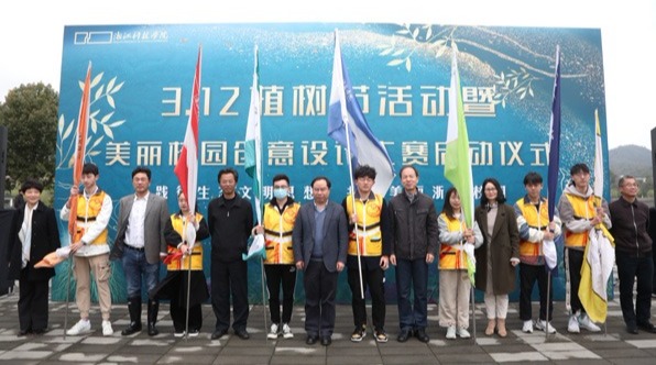 小和山校区3·12植树节活动暨美丽校园创意设计大赛启动仪式举行,校领导赵东福、符宁平、周加敏、冯军、单胜道、陆爱华、陈平,校长助理鲁伟权等出席。