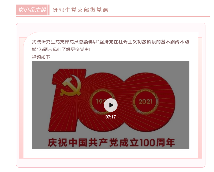 学习百年党史,凝聚奋进力量。连日来,我校各二级党组织开展多种形式党史学习教育,用党的奋斗历程和伟大精神激励青年学子学党史、悟思想。