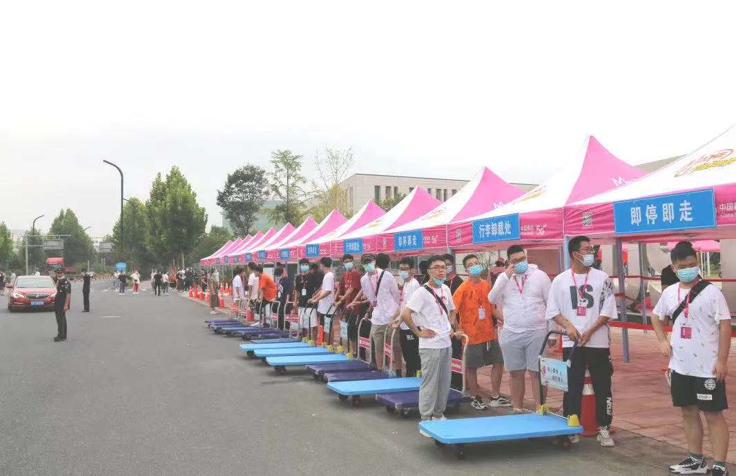 “同学你好,欢迎来到浙江科技学院,请往这边走!”“我来帮你拿行李吧!”……师生志愿者分布在校园内外开展车站接待、交通引导、行李搬运……为新生和家长排忧解难。