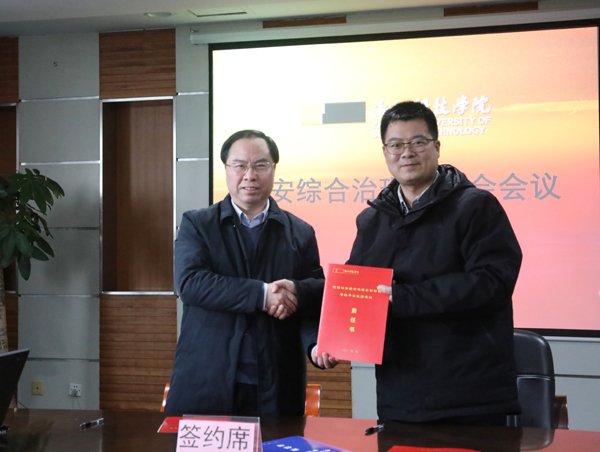 赵东福代表学校与二级单位代表签署2022年度《治安综合治理目标管理和等级平安校园建设工作责任书》《校园消防安全目标管理责任书》。