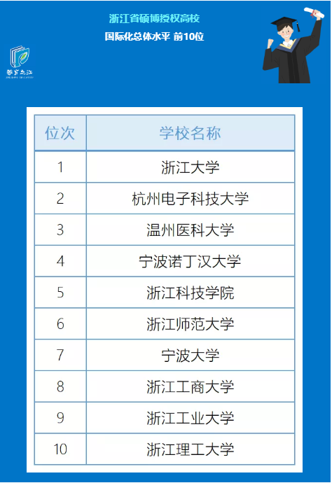 “年报”由浙江省国际交流协会委托浙江大学高等教育研究院实施,通过对各高校学生国际化、师资队伍和管理队伍国际化、课程与教学国际化、国际合作等情况分析,对各高校的国际化水平进行排序,已是连续第十年发布。