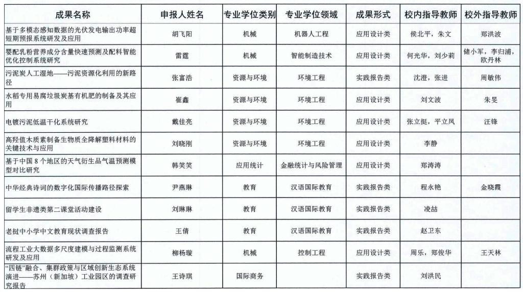 2023年浙江省专业学位研究生优秀实践成果名单