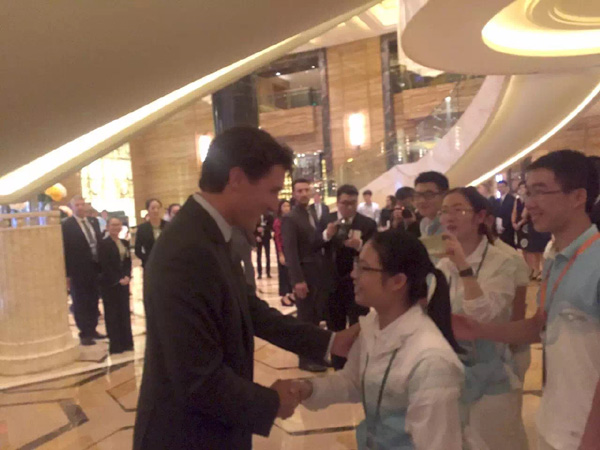图1:加拿大总理特鲁多鼓励我校志愿者喻云
