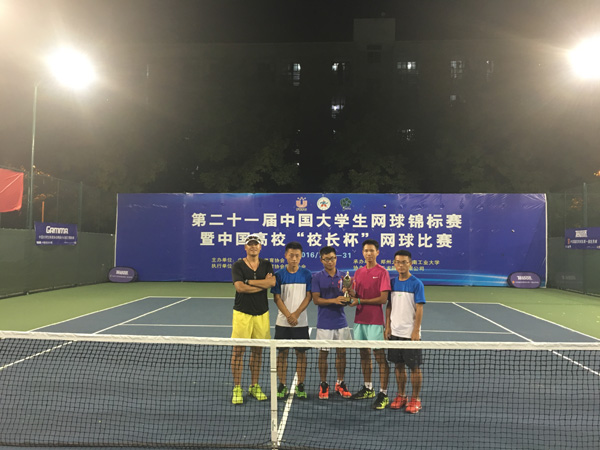 7月23—27日,第二十一届全国大学生网球锦标赛男团甲组(普通大学生组)比赛在河南郑州大学举行。来自全国138所高校的选手参加比赛,我校学子奋勇拼搏,不畏强手,先后击败了众多强队,荣膺本届中国大学生网球锦标赛男子团体甲组季军。