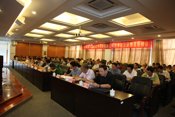 经省委同意,省委第八巡视组向浙江科技学院党委反馈专项巡视情况。2016年6月22日,省委第八巡视组组长陈松根向党委书记王建华反馈了巡视情况,省委巡视工作领导小组办公室副主任邱志明传达了省委书记夏宝龙关于巡视工作讲话精神。之后,陈松根代表巡视组向浙江科技学院党委领导班子进行了反馈;邱志明,省委教育工委委员、省教育厅副厅长丁天乐对落实巡视反馈意见的整改工作分别提出要求,王建华同志主持会议并作了表态发言。