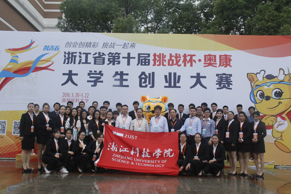 5月20至22日,由共青团浙江省委、浙江省教育厅、浙江省科学技术协会、温州市人民政府和浙江省学生联合会主办的“创青春”浙江省第十届“挑战杯•奥康”大学生创业计划大赛决赛在温州举行。我校信息管理与信息系统131班潘王群等同学的“杭州灵童科技有限公司”、给排水工程131班叶方蔚等同学的“杭州宠印科技有限公司”、生物工程141班李海凤等同学的“杭州安肽生物技术有限公司”、中德土木工程H142班方秋英等同学的“杭州新型接头科技有限公司”、软件工程142班钱倩晨等同学的“杭州博堃易网络科技有限公司”等5件作品荣获银奖,食品工程132班祁翼等同学的“杭州荳麺农业科技有限公司”等8件作品荣获铜奖。