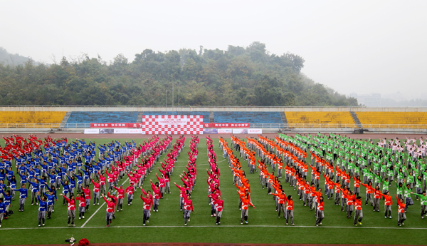 9点整,随着主会场总裁判一声口令,在《舞动中国》旋律下,全场师生在体育部杨榕斌老师带领下,共同迈出轻快的舞步,挥舞双手。整齐划一的动作,带来排山倒海般的气势。一位国贸专业的女生说,跳舞时雨水也是顺着眉梢尽情挥洒,真是让人醉。