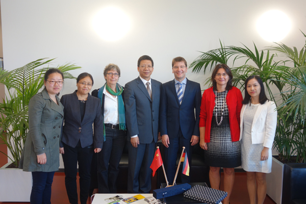 陈根芳一行与汉诺威应用科技大学新任校长Von Helden先生就两校全面合作进行深入沟通,签署两校学生交流协议。与该校国际处处长Bluemel女士就“2+3”项目的近况和发展进行详细会谈。访问汉诺威大学预科院期间,双方就“2+3”项目相关事宜进行研讨。代表团还看望了我校“2+3”项目在德学生。