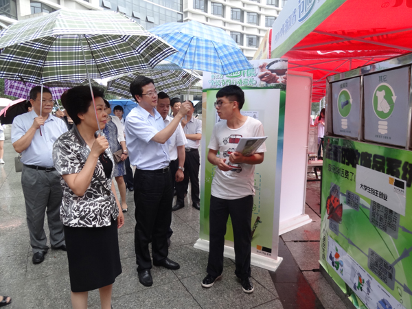 我校2014年浙江省“挑战杯”创业计划竞赛特等奖项目杭州执到宝环保科技有限公司,参加了子项目“节俭养德”全民节约巡礼活动。葛慧君等亲临“执到宝”展台,听取了项目介绍。该项目是一家利用智能手机软件应用平台,为城市居民提供垃圾分类回收服务,同时集废品回收、环保公益策划、APP广告推广及生活服务为一体的综合性环保公司。项目负责人经管学院叶欧同学现场用IPAD演示了废品回收、返利流程。葛慧君充分肯定学生积极投身环保事业的热情,鼓励学生大胆投身创新创业,利用现代科技手段改变人们生活观念,变废为“宝”。“执到宝”也吸引了不少观众的眼光。