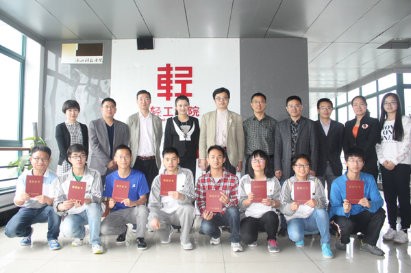 民建浙江省第四支部主委黄炜和王俊、许晗雨、钱必磊、谭飞燕等四位企业家到会颁奖。轻工学院负责人和教师代表等到会对获奖学生表示祝贺。能环专业2013级钟华栋、顾吉明2位同学获得一等奖学金,奖金各2000元,另有6位同学获二等奖学金,奖金各1000元。获奖同学表示,要继续努力学习,不停步,不懈怠,争取以优异成绩完成大学学业,努力成为社会需要的人才。