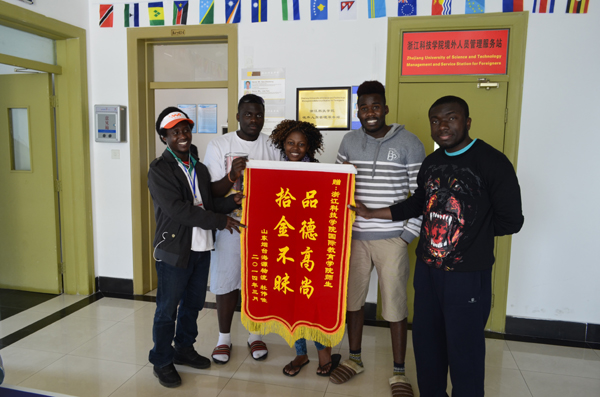 3月20日,国际学院收到了来自山东的一面锦旗,感谢我校土木工程专业赞比亚留学生摩斯(Chiluba Moses Kapya)(上图左二)拾金不昧。