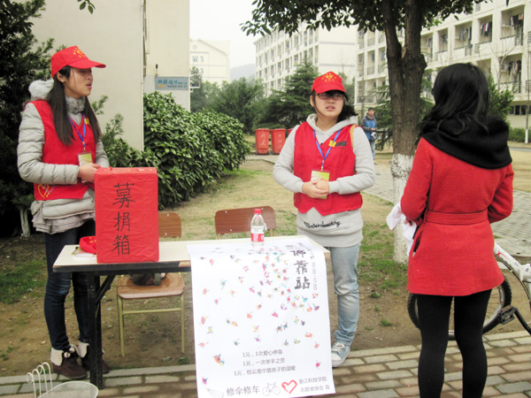 4日,我校志愿者参加了西湖区“弘扬雷锋精神,践行节约用水”为民服务日现场活动,志愿者发挥专业特长用科学小实验向市民展示如何节水、净水,循环用水(图1),受到市民欢迎。