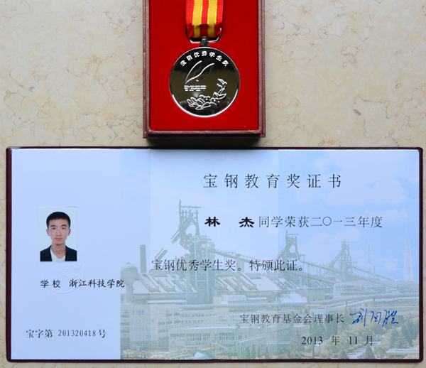 日前,2013年度宝钢奖学金评选结果揭晓。经过学院推荐、学校审核、公开竞评并经由浙江大学推荐等环节,我校建工学院土木工程102班林杰同学获评“宝钢优秀学生奖学金”,这也是我校首位获此殊荣的学生。