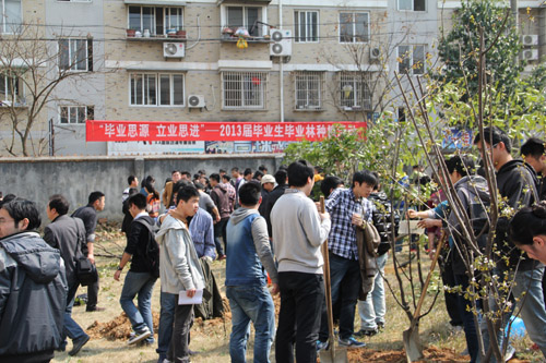 3月12日植树节来临之际,学校开展师生集体植树暨“毕业思源,立业思进”2013届毕业生毕业林种植活动。师生挥锹培土,在东和学生公寓共种植180余株桂花、枇杷、无患子等苗木。