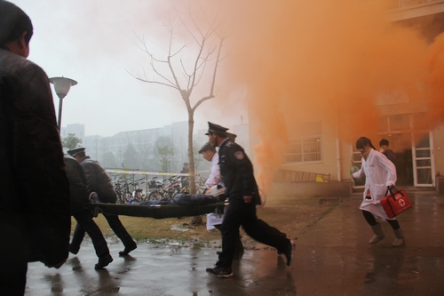 演练包括火灾报警、模拟灭火、应急疏散、逃生自救、伤员救助等多个项目。演练目的是强化学生的安全意识,学习火灾发生时的应对措施及逃生自救的技能;同时,锻炼学校安保人员、宿舍管理人员面对突发的火灾等险情时,报警、人员疏散、救护等快速反应和现场处理的能力。
