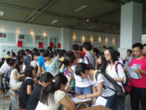 勤工助学校内岗位双向选聘会于9月13日在大学生创业广场举行,参加本次选聘会的总共有22个用工部门,提供招聘岗位310个,现场应聘人数近六百名。