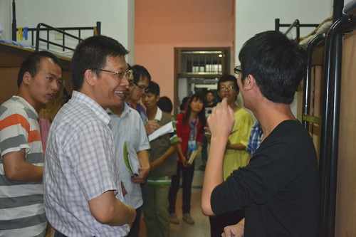 当晚六点半,与会人员分组对东和公寓、西和公寓学生寝室进行了全面、细致检查。检查发现,大部分寝室遵守寝室相关规定,自觉清理、打扫寝室卫生,整理学习生活用品,物品摆放有序,整洁,美观。一些寝室对“家”进行了富有特色、独具创意的布置,制定了寝室公约。不少“党员寝室”发挥党员先锋模范作用,为文明寝室建设作出表率,并带动周边寝室共同进步。各二级学院在寝室文明建设中也已行动起来,机械学院重点抓毕业班寝室,召开现场会,各寝室互相参观学习取经;生化学院抓好新生寝室文明习惯养成;理学院制作了富有学院特色的值日牌准备上墙。检查中也发现了一些不尽如人意的地方,检查老师一一提出督促同学改进。