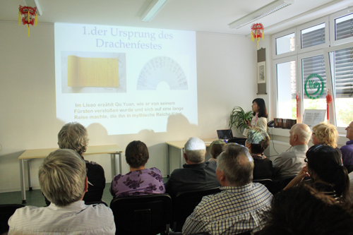 埃尔福特孔子学院的实习生为来宾讲解了端午节的起源、龙舟及粽子的故事,让听众体会到了端午节的人文情怀。两位留学生自愿献艺,为观众呈现了一场中国民乐的听觉盛宴。孔子学院的中文教师和实习生同台表演太极拳,活动中还放映了关于端午节的纪录片,为活动增添了不少乐趣。最后,所有的来宾一起品尝粽子,将此次活动画上了完美的句号。