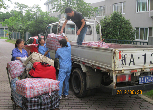 后勤公司层层分解制定工作任务,并制定周密计划,落实工作责任人。搬迁期间,公司各部门通力合作,涉及的工作人员每天早上五六点起床,大家战高温、迎暴雨,未有丝毫松懈,保持了较高的工作热情和干劲。在搬迁过程中,采供部门随同车辆进行全程跟车登记工作;公寓中心收回学生寝室钥匙,发放学生入住登记卡片,涉及搬迁的楼长更是一间间宿舍检查学生打包的情况,指导行李标签张贴,检查物品有无遗漏等;物管中心提前对搬迁宿舍水电气进行检查、维修,同时在每个楼道安排工作人员协助搬家公司分解学生包裹,确保学生行李物品能够准确无误地送到指定宿舍。