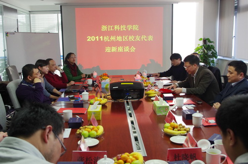 杭州地区校友代表新年座谈会近日在杭州恒生电子股份有限公司举行,校党委副书记陈根芳出席会议,在杭校友总会理事及校友代表、学校学生处负责人、校友办参加会议。