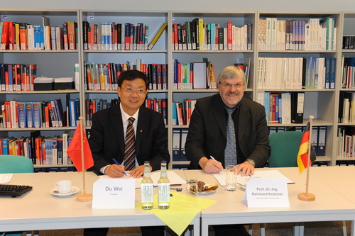 杜卫还代表学校与基尔大学签署了新一轮合作协议,双方拟在“数字通讯”、“电子信息工程” 和“经济工程-电子信息工程方向”等三个专业开展选送优秀毕业生赴德国攻读硕士学位项目,并每年互派本科交换生到对方学校进行理论学期或实习学期的学习。