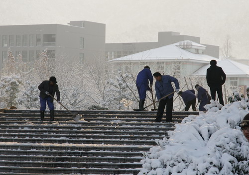12月15日,杭城下起了今冬第一场雪,从早上7点多到深夜,大雪一直未停。截至当晚8点钟,杭州市区积雪已经达到9厘米,为历年罕见。为确保师生正常的工作、学习、生活,校内各单位积极行动起来,防范雨雪冰冻造成的危害。