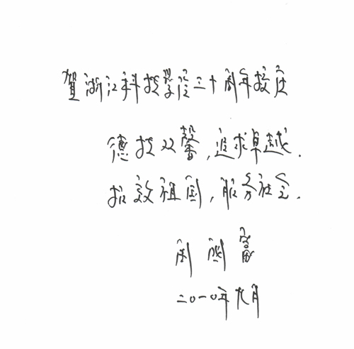 2010年10月,学校迎来30华诞。30年来,学校在浙江省委省政府的正确领导、上级领导亲切关怀以及社会各界的支持帮助下,各项事业取得了显著的成绩。在这喜庆的日子里,全国人大常委会副委员长、中国科学院院长路甬祥,中共浙江省委书记赵洪祝、省长吕祖善等领导,教育部等政府部门以及浙江大学等兄弟高校和社会各界纷纷发来题词、贺信,祝愿我校办出特色、办出水平,早日建成特色鲜明的高水平应用型大学。