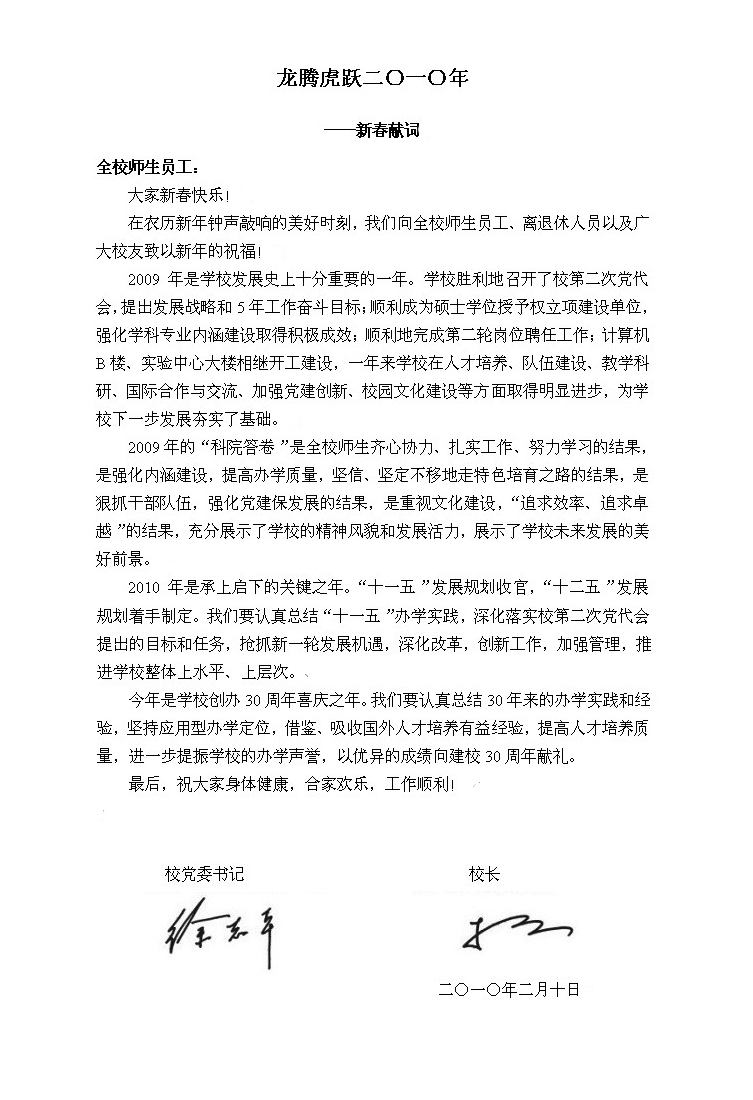新春献词:龙腾虎跃二〇一〇年