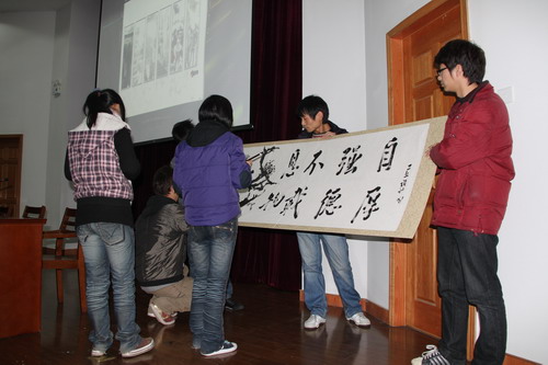 各二级学院选送的20个候选班级通过多种形式,全方位多角度地向现场的老师和同学们展示了班级特色以及各自取得的成绩。机械设计及自动化073班科技竞赛硕果累累、英语072班则展示了一连串漂亮的获奖数据、艺术学院工业设计(工学)081班的同学现场作书绘画尽显艺术风采、国贸073班以极强的班级凝聚力征服评委。经过激烈角逐,机械设计及自动化073班等10个班级获得了08-09学年校级“特优学风示范班”的荣誉称号。