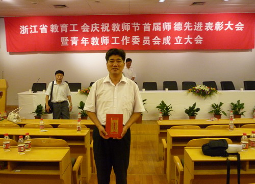 9月7日下午,在第25个教师节来临之际,省教育工会召开庆祝教师节暨首届浙江省师德先进表彰大会。我校理学院岑岗教授受“省师德先进个人”表彰。大会共表彰了10名首届“浙江省师德标兵” 和102名“浙江省师德先进个人”。