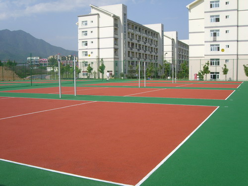 西和公寓块球场与排水管道工程日前通过竣工验收正式投入使用。球场由4个标准篮球场、4个排球场和3个羽毛球场组成,总面积为5200多平方米,设计为6mm厚EPDM塑胶面层,球场南北两侧设有排水沟,四周安装高4米的包塑网墙,不同的活动区域有活动围网分隔,以满足同学们不同的需要。