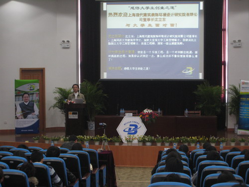 讲座伊始,沈立东与同学们分享了他从一名国有企业团干部走上创业之路的不寻常经历。随后,他从大学生活如何获得创业知识、积累创业经验、从事创业实践等三个方面和同学们进行了交流,畅谈了他对创业的理解。“创业,是认识思考,学习推理和行为实践的过程”,“生活的理想就是为了理想的生活”,“人的一生是在不断地完善自己的目标”……一个半小时的演讲中,他给同学们传递了丰富的创业知识和创业经验。