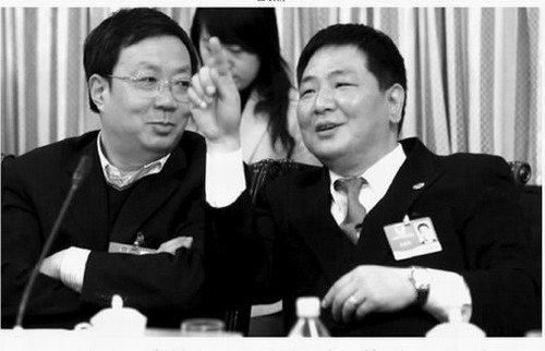 上图为 杜卫与全国政协委员、富通集团有限公司董事长王建沂(右)在讨论交流(原载于3月12日青年时报)