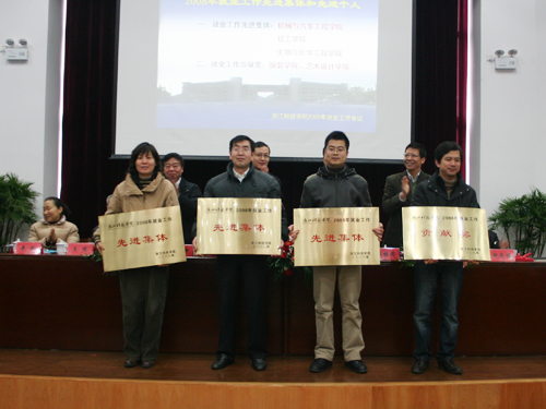 会上,副校长陈根芳宣读《浙江科技学院关于表彰2008年毕业生就业工作先进集体和先进个人的决定》。校领导为先进集体和先进个人授奖牌和发奖。