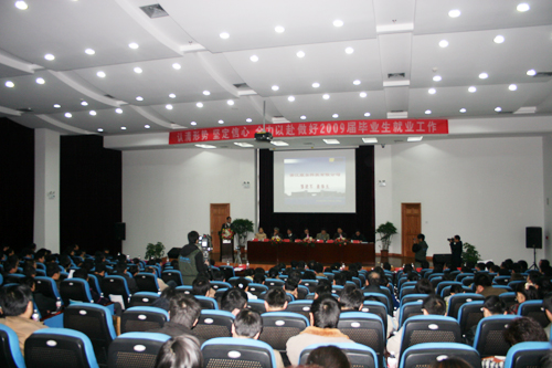校党委书记徐志平作了题为“立足当前,着眼长远,化危为机,以改革创新的精神推进毕业生就业工作”的报告。他说,2008年学校克服种种困难,顺利完成预定目标和任务,就业率继续保持在全省同类高校前列,极大鼓舞了全校干部师生的精神,增强了学校坚持走培养高素质应用型人才之路、实现跨越式发展的信心和勇气,也为学校进入硕士学位授予权立项建设单位提供了有力的支撑,为即将召开的第二次党代会献上了厚礼。
