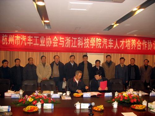 根据协议,2007年,杭州市政府提出了“以发展整车为突破口,实现汽车工业跨越式发展”的战略指导思想,制订了《杭州市汽车发展规划》、《杭州市汽车工业发展暨产业基地规划》和《35平方公里汽车产业基地选址规划》。根据协议,我校将与杭州市汽车工业协会在科研实践、校企合作、人才培养、实习就业等方面开展全面合作。我校机械学院将成为杭州市汽车工业的职工培训基地,在企业职工教育和技能培训等领域开展多种形式的人才培训,打造汽车人才培养的教育平台。以汽车工业为挈入点,在校企合作、人才培养、实习就业、员工培训等方面开展全方位的合作。通过学校和行业的强强联合,共同推动杭州市汽车行业的科技开发与推广,推动汽车制造与装备自动化技术等领域的技术转移和产业化。