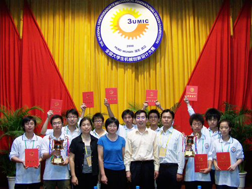 10月18至于20日,全国第三届大学生机械创新设计竞赛在武汉举行。我校机械学院邹凤楼、杨华文老师指导,聂琼辉、陈幸、林超、赵佳仁等同学设计制作的“飞水走壁”游泳池壁清洗机获得一等奖;段福斌、陈岁繁老师指导,吴若伟、鲍雪忠、韦天勇、夏思、陈会明等同学设计制作的“空间卫士”——易拉罐压缩回收装置获得二等奖。