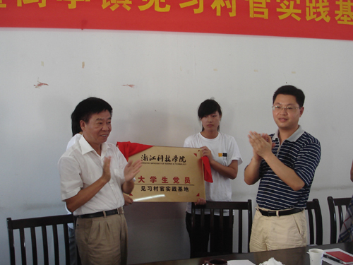 7月25日,我校大学生党员新农村“育村官”社会实践启动仪式暨“见习村官实践基地”揭牌仪式在诸暨市街亭镇举行。校党委副书记胡浙平出席仪式。共青团诸暨市委领导,街亭镇党委、行政领导,我校党委组织部、团委负责人,当地大学生村官代表及全体实践团成员共30余人参加。