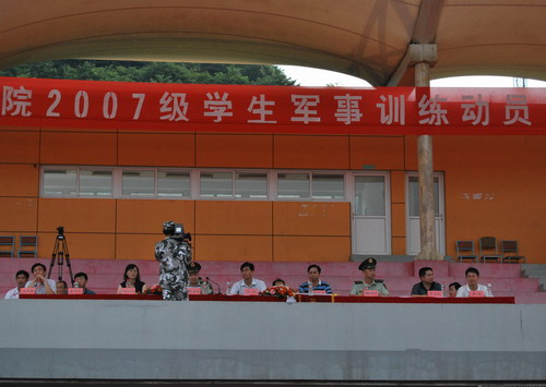 7月3日,2007级学生军训动员大会举行。校党委副书记陈浩、副校长赵东福出席动员大会。武警杭州指挥学院训练部负责人和我校相关职能部门及二级学院党总支负责人参加会议。