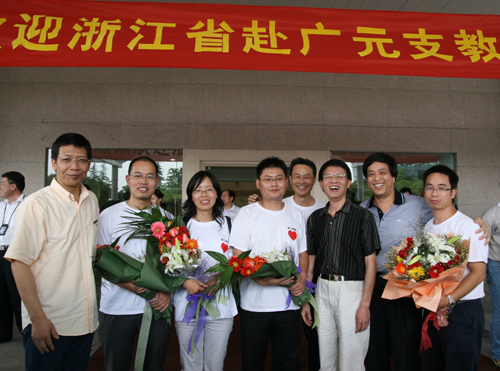 7月3日,浙江赴广元支教团结束为期一个月的支教工作凯旋。我校赛燕燕、俞林鑫、祝江鸿3位教师随团返回。省委教育工委副书记、省教育厅副厅长蒋胜祥到机场迎接。副校长陈根芳率相关职能部门负责人到机场迎接3位教师回杭。