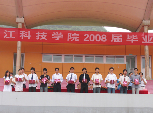 副校长赵东福宣读了学校《关于表彰2008届优秀毕业生和“两项计划”志愿者的通报》。张闻斌等100名省级优秀毕业生、赵子仪等324名校级优秀毕业生和黄逸秋等9名“两项计划”志愿者受到表彰。