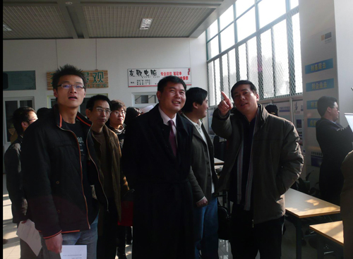座谈会前,招聘团一行参观了我校办学成果展和大学生创业广场。