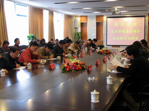 1月8日上午,台州学院院长龚建立,副院长张明龙、金则新率台州学院相关职能部门和二级学院负责人来校交流工作。校党委书记徐志平、台州学院副院长金则新出席交流会。校评建办、相关职能部门和艺术学院负责人参加会议。